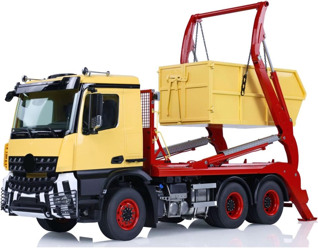 The 1/14 RC hydraulic skip loader VL18U K3363 metal swing arm dump truck with 6×4 drivetrain and PL18EV Lite radio system is a highly specialized remote control construction vehicle designed for enthusiasts who want more than just drivingโthey want functional realism. This model focuses on replicating real-world skip loader operations, combining hydraulic precision, mechanical durability, and detailed design.