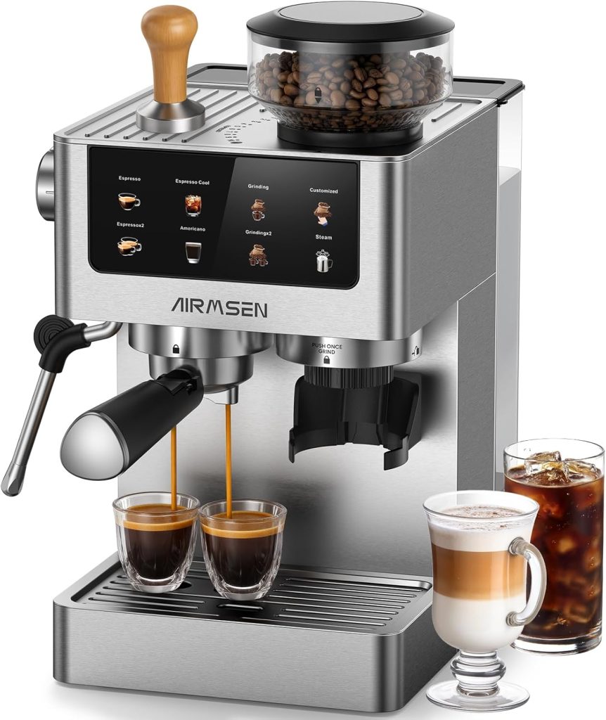 The AIRMSEN espresso machine with grinder stands out as an all-in-one appliance designed to streamline coffee preparation.