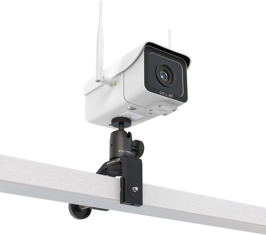 The ATLI ATL4500 4K Time Lapse Camera Bundle is a professional-grade system built for outdoor and industrial use. It includes a 4K time-lapse camera, a sturdy C-clamp mounting system, and a mini ball head for flexible positioning.