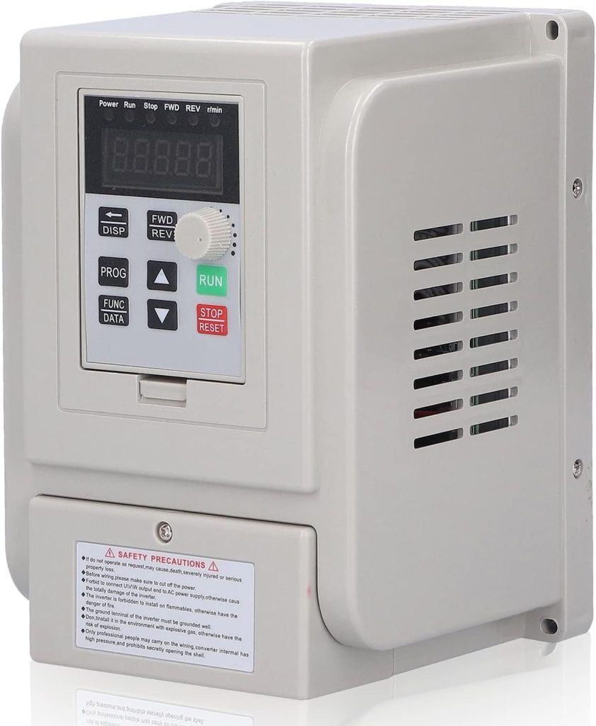 A Variable Frequency Drive (VFD) is an electronic device that controls the speed, torque, and direction of an AC motor by adjusting the frequency and voltage supplied to it. The Acogedor 1500W VFD inverter frequency converter takes standard household power and converts it into a three-phase output suitable for industrial motors.