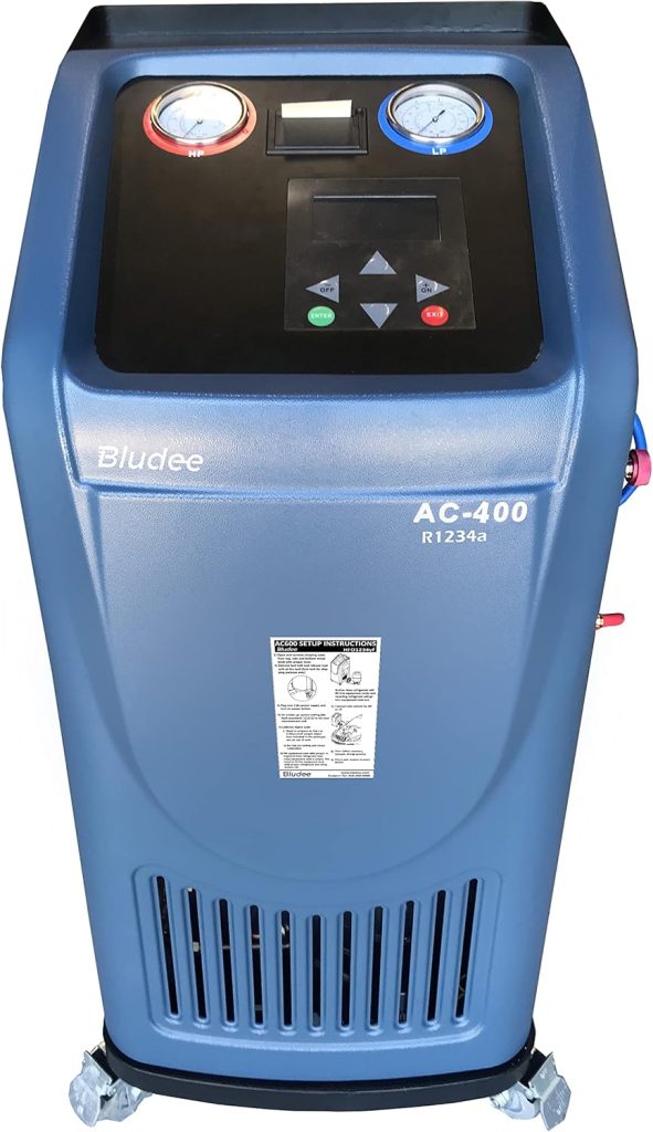 The Bludee AC400 is a fully automatic machine built to handle refrigerant recovery, recycling, and recharge tasks with minimal manual intervention. Designed specifically for R134a refrigerant systems, it integrates multiple service functions into a single unit.