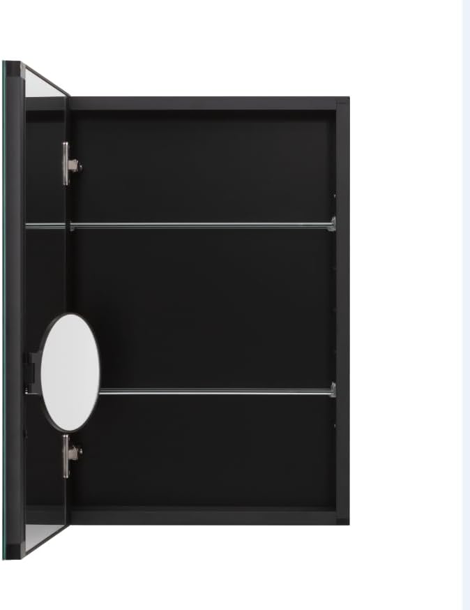 One of the standout features of this cabinet is the dual-sided mirror doors, allowing users to benefit from reflective surfaces both inside and outside. This design expands visibility while helping maintain an uncluttered environment. Additionally, the 3X movable magnifier mirror makes precision grooming tasks easier, whether applying makeup, shaving, or performing skincare routines.