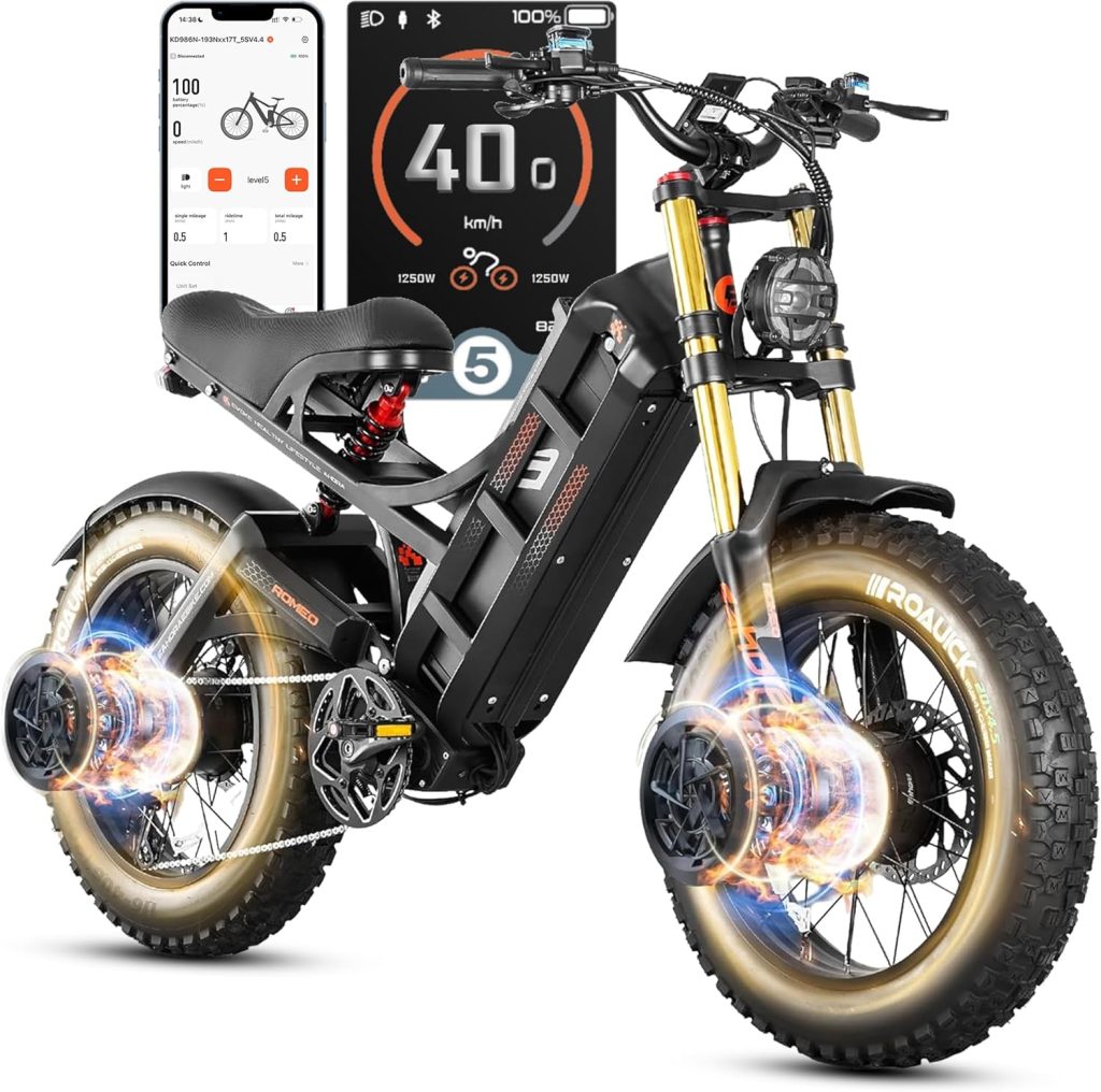 Equipped with a high-performance dual motor system, fat tires designed for multiple terrains, and a long-range battery, the bike offers the kind of capability typically associated with off-road motorcycles while maintaining the flexibility and efficiency of an electric bicycle.