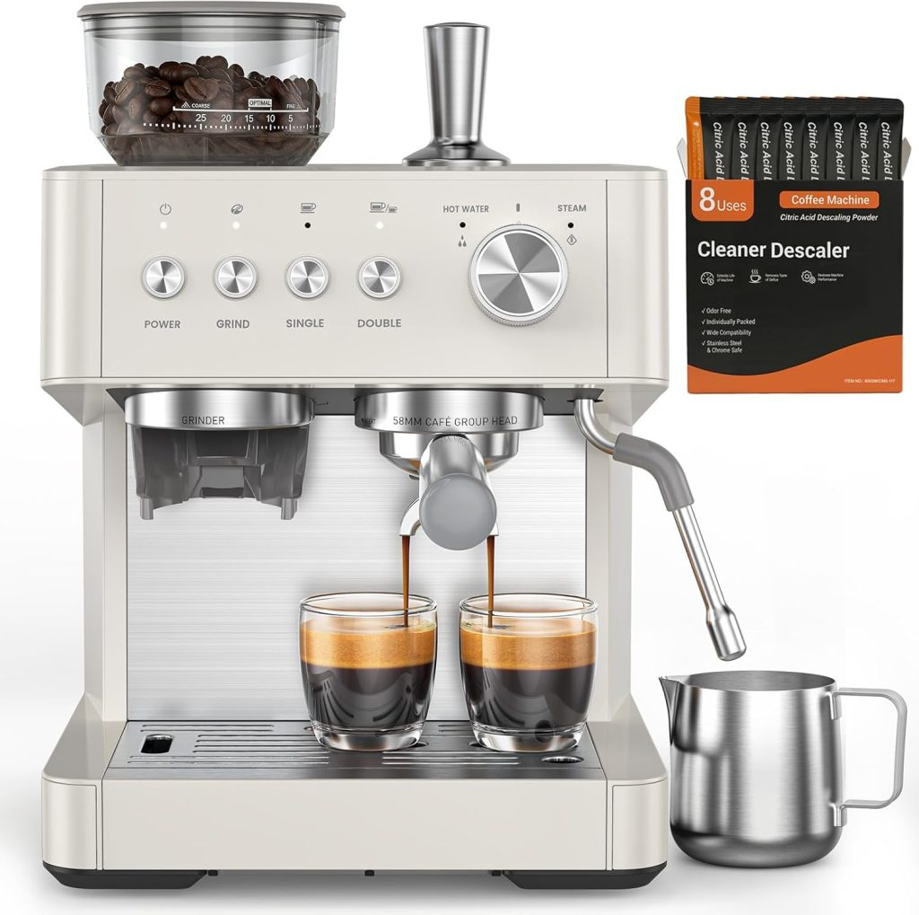 This machine positions itself as a prosumer-grade solution, offering advanced features such as a 58mm commercial portafilter, precision temperature control, and an integrated grinder with micro-adjustments. In this detailed review, we will analyze its specifications, performance, benefits, usage, safety considerations, and overall value.