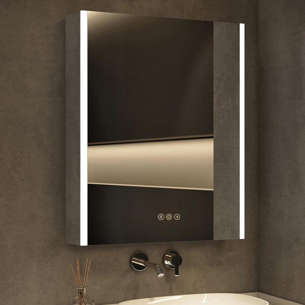 The cabinet is designed to help homeowners organize toiletries while maintaining a clean and modern bathroom aesthetic. Its LED lighting system is particularly helpful for grooming, skincare routines, and makeup application.