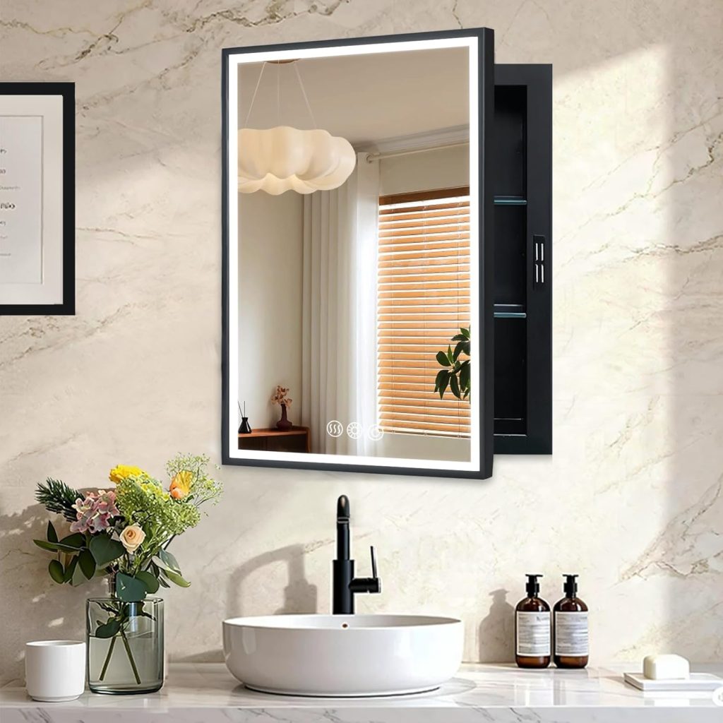 Designed with a sleek black metal frame, integrated LED lighting, and anti-fog technology, this cabinet provides both visual appeal and practical performance. Whether you are upgrading a small bathroom or enhancing a contemporary vanity area, this product offers a well-rounded solution.