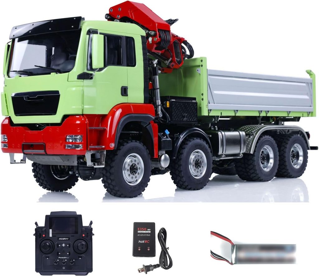 The LESU 1/14 8×8 RC Hydraulic 3-Way Dump Truck with Crane is a sophisticated and powerful remote control construction vehicle built for enthusiasts who value realism, engineering precision, and multi-function capability. Designed to replicate a real-world heavy-duty dump truck, this model combines advanced hydraulic technology with an 8×8 drivetrain and a versatile 3-way dumping system.