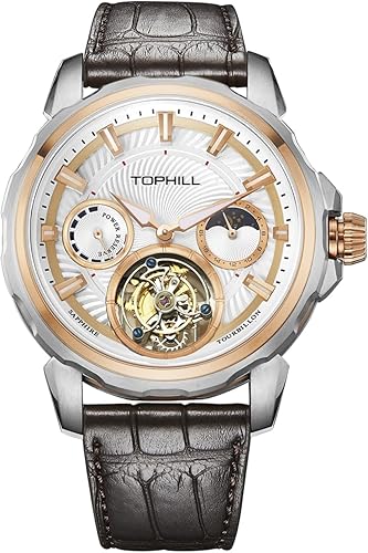 The Luminous Men’s Tourbillon Mechanical Watch Manual Winding Movement Moon Phase Watches Sapphire Waterproof Wristwatch represents a sophisticated fusion of artistic design and mechanical innovation. Its exposed tourbillon mechanism, celestial-inspired dial elements, and premium materials make it an appealing option for collectors and luxury watch enthusiasts.