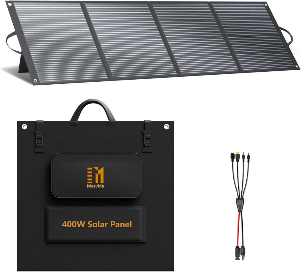 Bold keywords: MESUVIDA 400W portable solar panels, portable solar panel review, folding solar panel, ETFE solar panel, camping solar panels, RV solar backup, emergency solar power