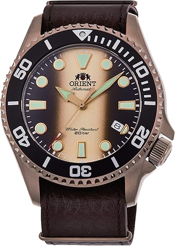 The Orient Triton diver watch presents a distinctive look that sets it apart from typical sport watches. The brown dial introduces a refined color tone associated with sophistication and warmth. This unique aesthetic allows the watch to complement both casual and semi-formal attire.