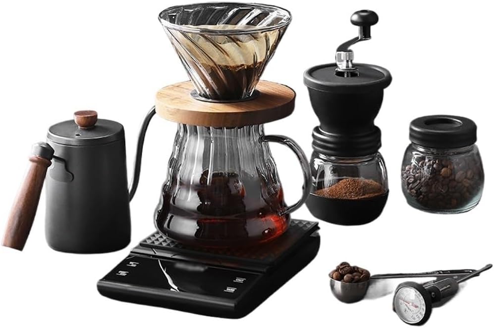 With durable materials, compact design, and quiet operation, this coffee set offers a convenient solution for individuals seeking a manual brewing method.
