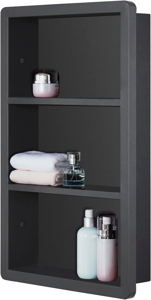 Manufactured by IDYLLOR, this wall-mounted niche is designed to provide a professional built-in look without complicated installation or additional tile work. Made from premium 304 stainless steel with a matte black finish, the cabinet combines durability with minimalist style. Its recessed design allows it to sit flush with the wall, making it an excellent choice for bathrooms, showers, vanities, and even other rooms of the house where extra storage is needed.