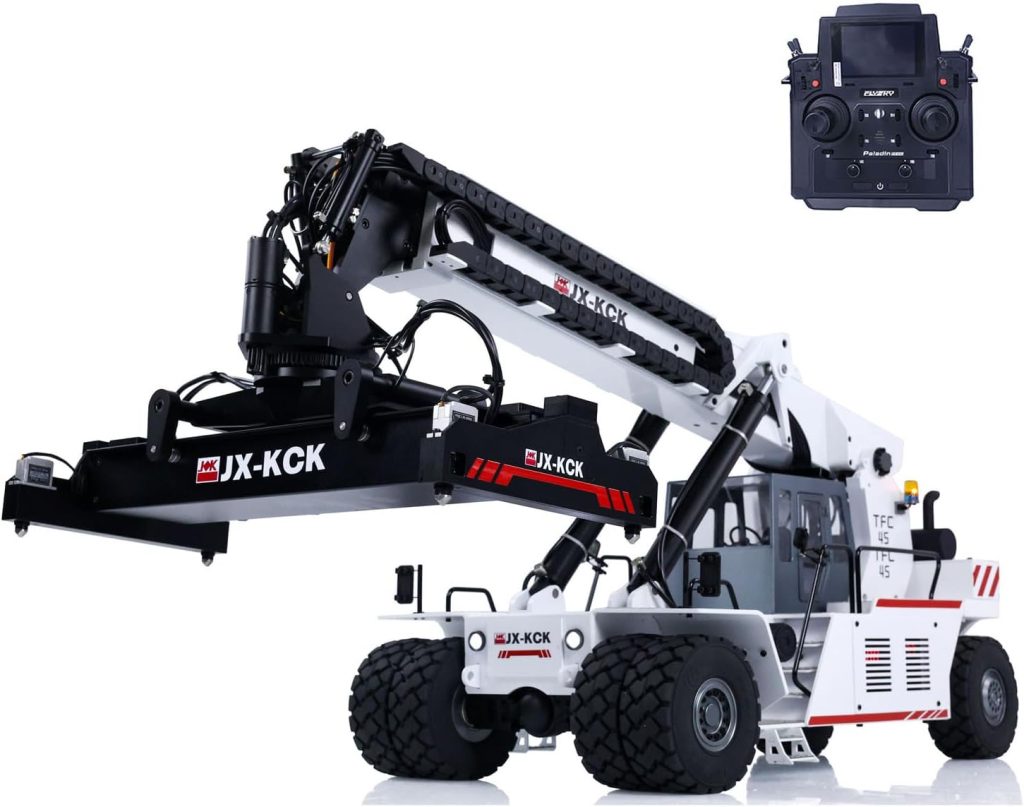 The TOUCAN RC HOBBY 1/14 JX-KCK RC Hydraulic Reach Stacker TFC45 brings a fresh and highly specialized experience to the world of scale RC construction equipment. Unlike traditional RC trucks or bulldozers, this machine focuses on container handling and lifting operations, replicating the functionality of real-world reach stackers used in ports and logistics yards.