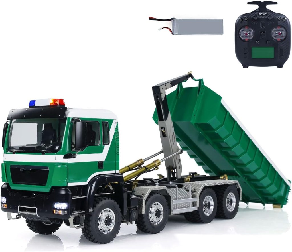 This is not a basic RC toy. It is a detailed scale model designed to replicate the functionality of a real dump truck, complete with hydraulic lifting, multi-speed transmission, and an 8×8 all-wheel-drive system. Built for users aged 14 and above, it appeals to hobbyists, collectors, and anyone fascinated by construction machinery.