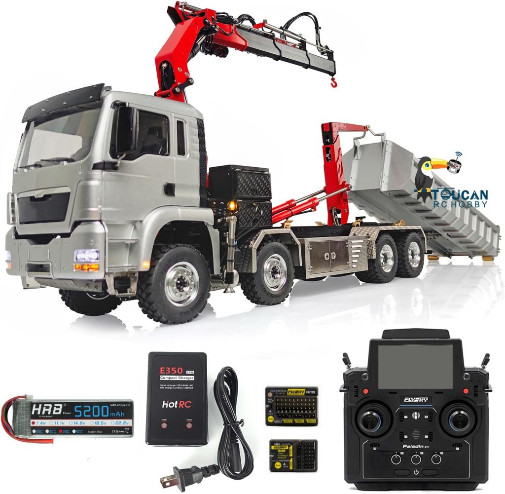 The TOUCAN RC HOBBY LESU 1/14 8×8 RC Roll on/Off Hydraulic Truck Crane Dumper Tipper Radio Battery is a sophisticated and highly capable RC vehicle designed for enthusiasts who demand realism, power, and versatility. Combining the functionality of a heavy-duty 8×8 dumper truck with a fully operational hydraulic crane, this model delivers a multi-purpose experience that goes far beyond standard RC trucks.